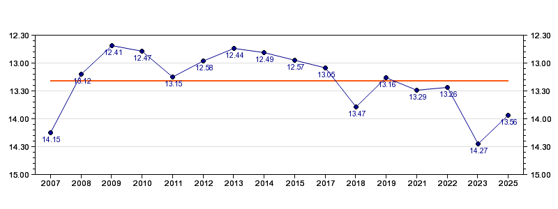 Antall deltagelser16 (i perioden 2007 - 2025)