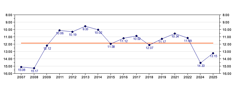 | 2009 | Kalkulator | 12:12 (1482 m/h) | 00:00 (0 m/h, 0 %) | 06:04 (06:04, 906 m/h, 61 %) | 10:53 (04:49, 1423 m/h, 96 %) | 12:12 (01:19, 1895 m/h, 127 %) |