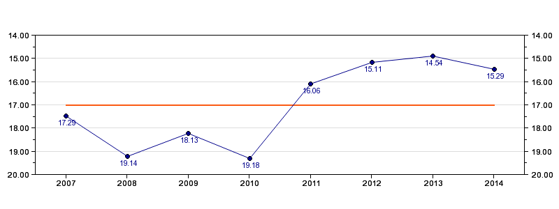2014Kalkulator15:29 (1167 m/h)02:32 (1274 m/h, 109 %)07:01 (04:29, 1227 m/h, 105 %)13:19 (06:18, 1088 m/h, 93 %)15:29 (02:10, 1152 m/h, 98 %)
