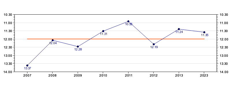 | Forrige tid | 11.35 (2023) |