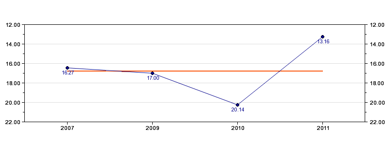 | Forrige tid | 13.16 (2011) |