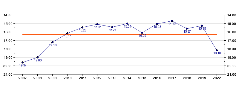 Antall deltagelser14 (i perioden 2007 - 2022)