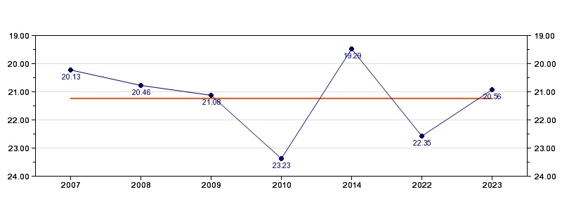 | Forrige tid | 20.56 (2023) |
