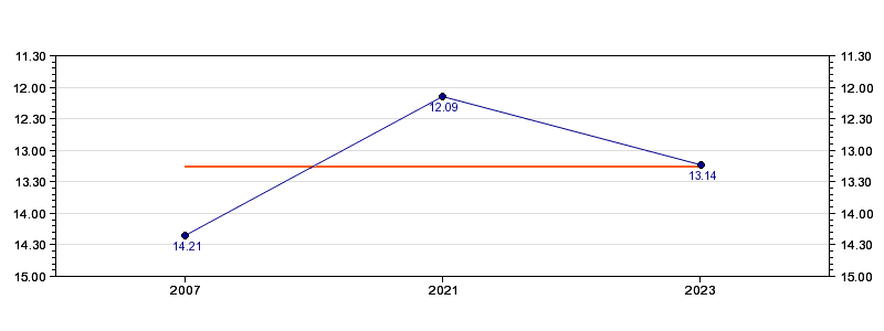 | Forrige tid | 13.14 (2023) |