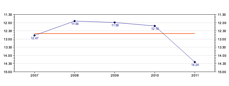 | Forrige tid | 14.24 (2011) |