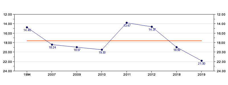 | Forrige tid | 21.50 (2019) |