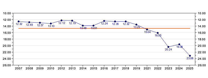 Antall deltagelser17 (i perioden 2007 - 2025)