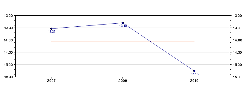 | Forrige tid | 15.16 (2010) |