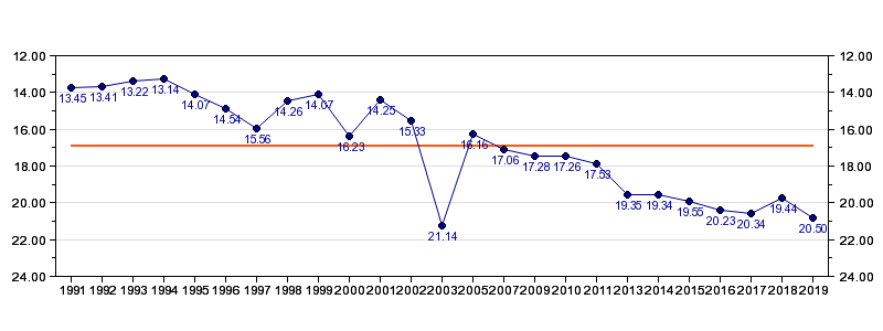 | Antall deltagelser | 25 (i perioden 1991 - 2019) |