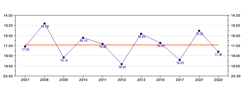 | Forrige tid | 17.36 (2022) |