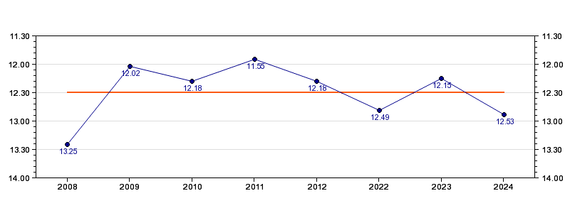 Antall deltagelser8 (i perioden 2008 - 2024)