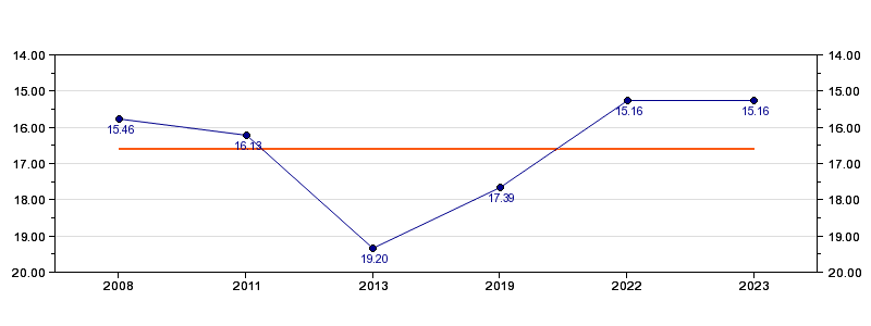| Forrige tid | 15.16 (2023) |