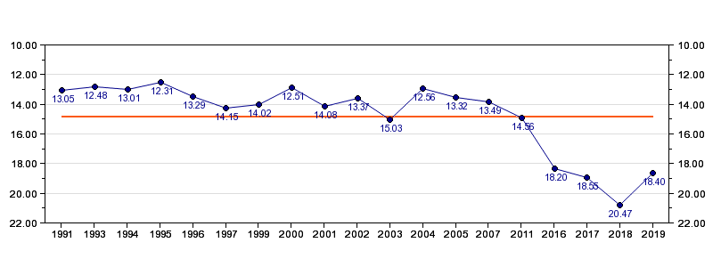 Antall deltagelser19 (i perioden 1991 - 2019)