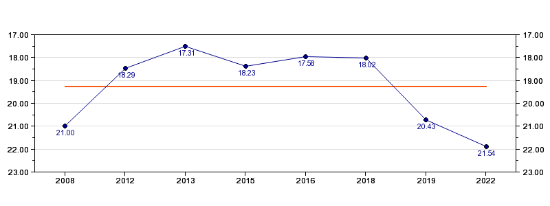 | Antall deltagelser | 8 (i perioden 2008 - 2022) |