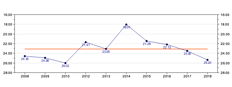 2018Kalkulator25:20 (713 m/h)03:31 (917 m/h, 128 %)11:42 (08:11, 672 m/h, 94 %)22:24 (10:42, 640 m/h, 89 %)25:20 (02:56, 850 m/h, 119 %)