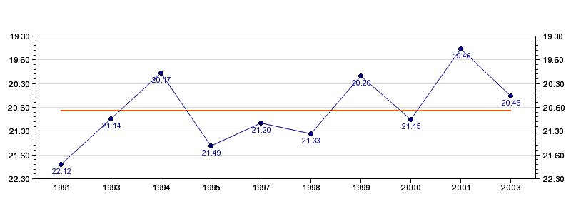 Antall deltagelser10 (i perioden 1991 - 2003)