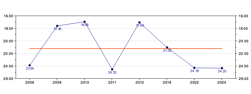 Antall deltagelser8 (i perioden 2008 - 2024)