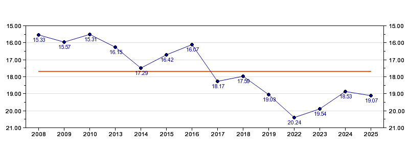 | Antall deltagelser | 14 (i perioden 2008 - 2025) |