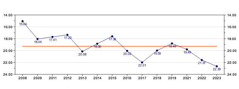 Antall deltagelser14 (i perioden 2008 - 2023)