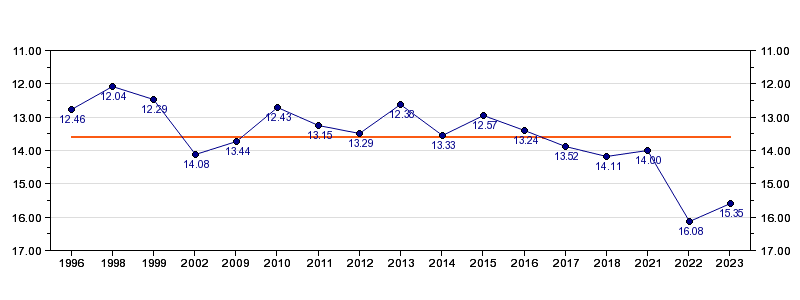 | Forrige tid | 15.35 (2023) |