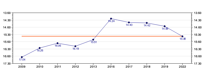 | Forrige tid | 15.38 (2022) |