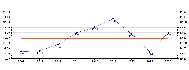 | Forrige tid | 13.03 (2025) |