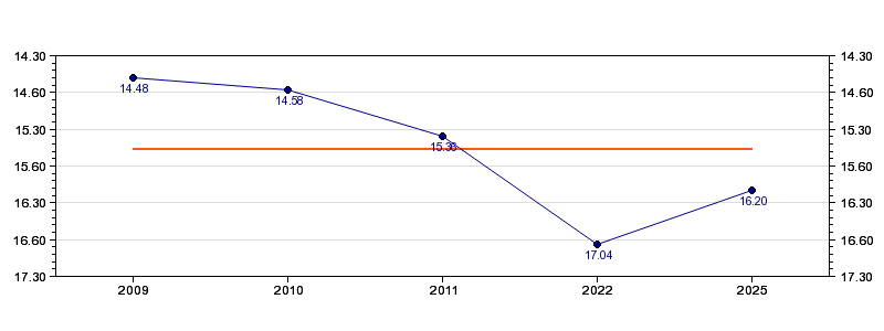 | Forrige tid | 16.20 (2025) |