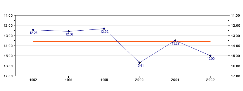 | Forrige tid | 15.00 (2002) |