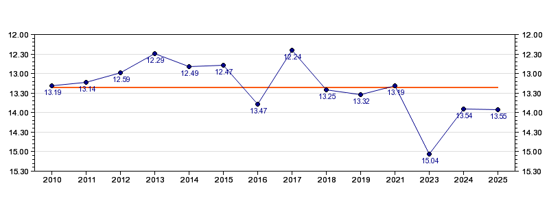 Antall deltagelser14 (i perioden 2010 - 2025)