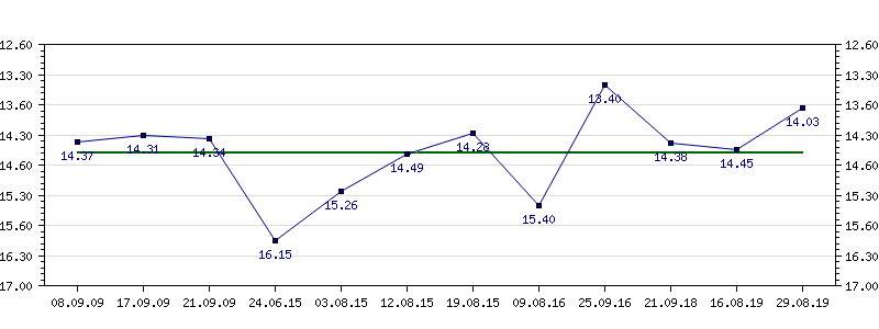 | 19.08.2015 | 14.28 | 09.08.2016 | 15.40 | 25.09.2016 | 13.40 | 21.09.2018 | 14.38 | 16.08.2019 | 14.45 | 29.08.2019 | 14.03 |