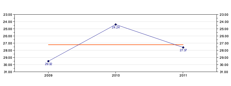 | Forrige tid | 27.37 (2011) |