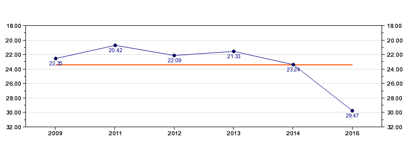 | Forrige tid | 29.47 (2016) |