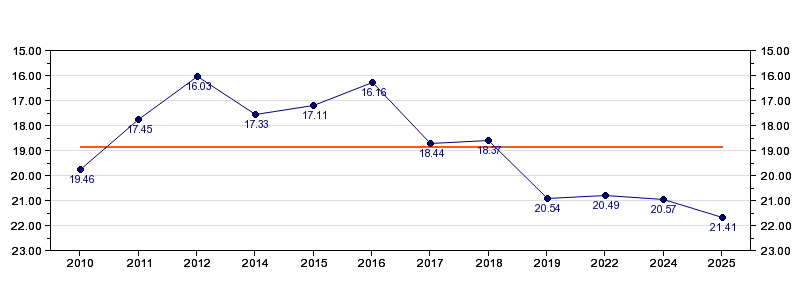 | Forrige tid | 21.41 (2025) |