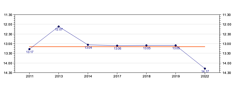| Forrige tid | 14.17 (2022) |