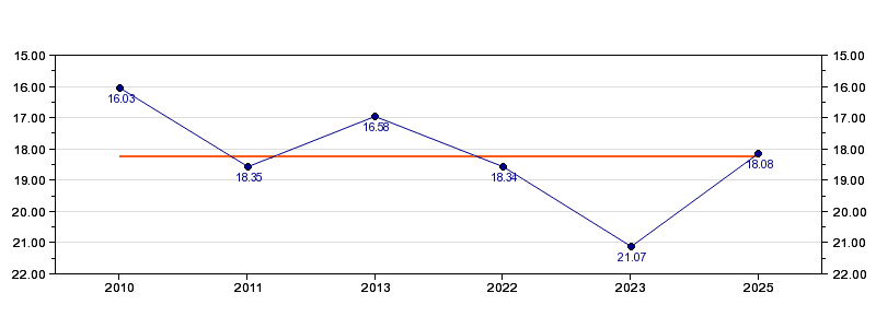 | Forrige tid | 18.08 (2025) |
