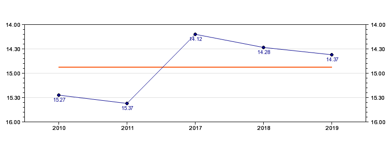 | Forrige tid | 14.37 (2019) |