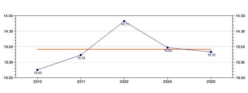 Antall deltagelser5 (i perioden 2010 - 2025)