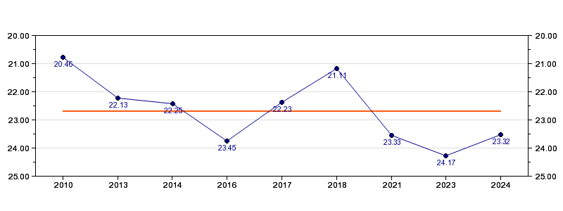 2023Kalkulator24:17 (744 m/h)04:01 (803 m/h, 107 %)11:17 (07:16, 757 m/h, 101 %)21:07 (09:50, 697 m/h, 93 %)24:17 (03:10, 788 m/h, 105 %)