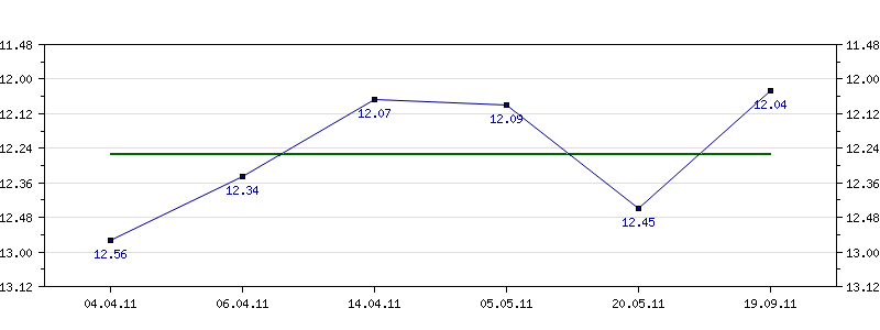 | 04.04.2011 | 12.56 | 06.04.2011 | 12.34 | 14.04.2011 | 12.07 | 05.05.2011 | 12.09 | 20.05.2011 | 12.45 | 19.09.2011 | 12.04 |