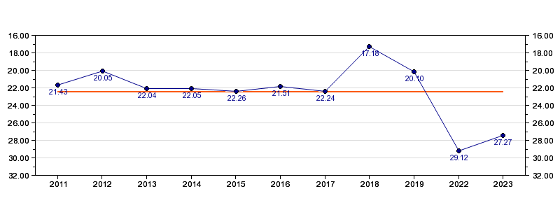 2023Kalkulator27:27 (658 m/h)04:12 (768 m/h, 116 %)12:47 (08:35, 641 m/h, 97 %)24:13 (11:26, 599 m/h, 91 %)27:27 (03:14, 771 m/h, 117 %)