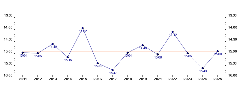 | 2025 | Kalkulator | 15:00 (1205 m/h) | 02:39 (1218 m/h, 101 %) | 07:13 (04:34, 1204 m/h, 99 %) | 13:15 (06:02, 1136 m/h, 94 %) | 15:00 (01:45, 1426 m/h, 118 %) |