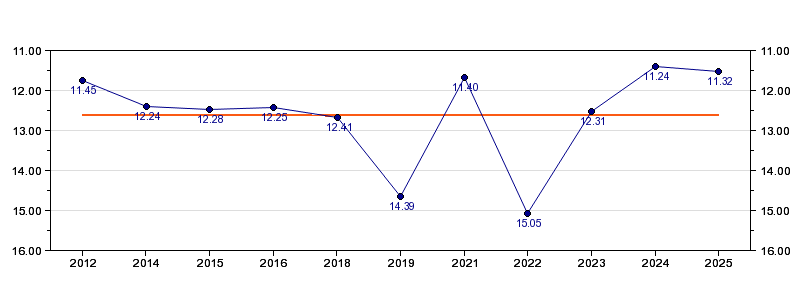 | Antall deltagelser | 11 (i perioden 2012 - 2025) |