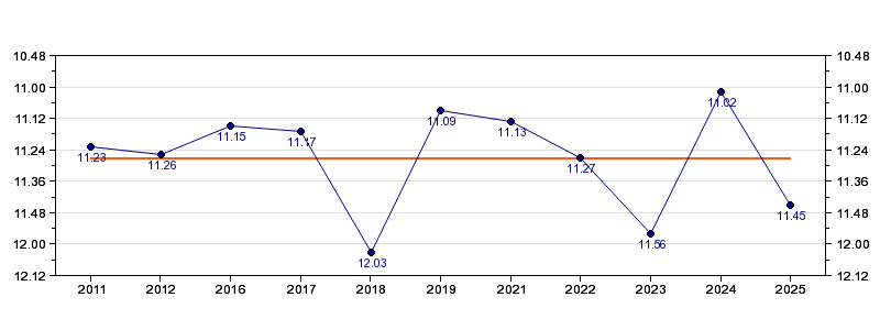 Antall deltagelser11 (i perioden 2011 - 2025)