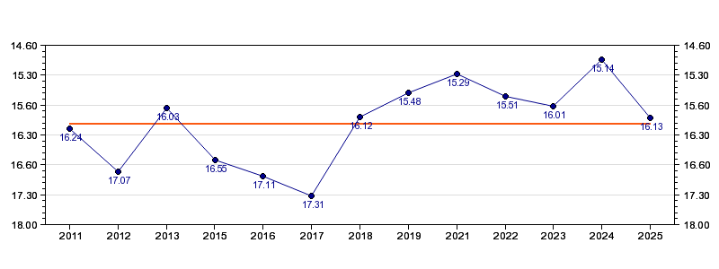 Antall deltagelser13 (i perioden 2011 - 2025)