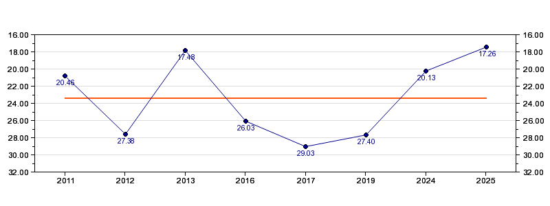 | Antall deltagelser | 8 (i perioden 2011 - 2025) |