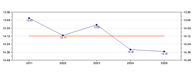 | Forrige tid | 14.35 (2025) |
