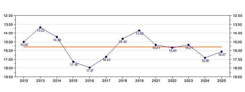 Antall deltagelser13 (i perioden 2012 - 2025)