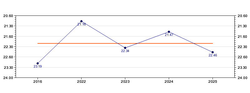 Antall deltagelser5 (i perioden 2016 - 2025)