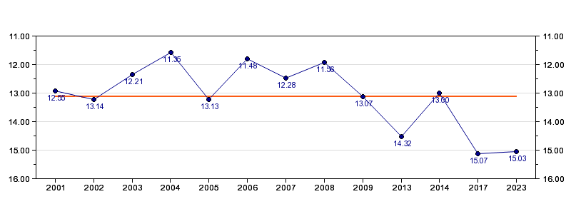 Antall deltagelser13 (i perioden 2001 - 2023)