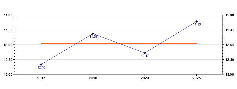 | Forrige tid | 11.13 (2025) |